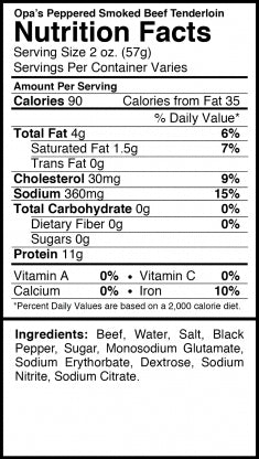 All Opa’s smoked meats require refrigeration, without exception. Generally, smoked sausage has a ninety-day refrigerated shelf life and can be frozen for up to one year. Keep tenderloins and jerky in a well-ventilated, dry area of the refrigerator. Do not store tenderloins or jerky in plastic wrap, plastic bags or any sealed container — these items keep best loosely wrapped in a clean kitchen towel or paper towel.