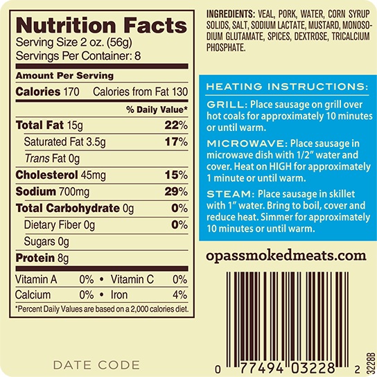 All Opa’s smoked meats require refrigeration, without exception. Generally, smoked sausage has a ninety-day refrigerated shelf life and can be frozen for up to one year. Keep tenderloins and jerky in a well-ventilated, dry area of the refrigerator. Do not store tenderloins or jerky in plastic wrap, plastic bags or any sealed container — these items keep best loosely wrapped in a clean kitchen towel or paper towel.